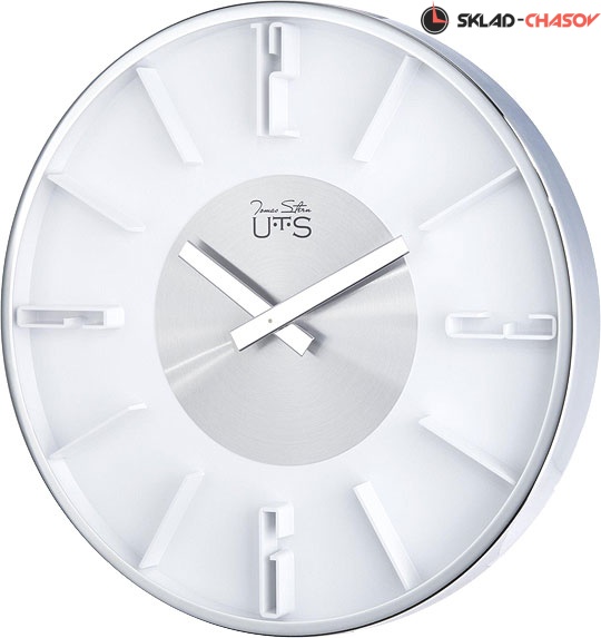 Настенные часы в глянцевом металлическом корпусе. Циферблат с объемными арабскими цифрами и метками из матового пластика белого цвета. Центральный диск выполнен из шлифованного металла. Отделка стрелок - хром. Циферблат закрыт стеклом. Кварцевый механизм Young Town (Гонконг). Требуется 1 батарейка типа АА (не включена в поставку).