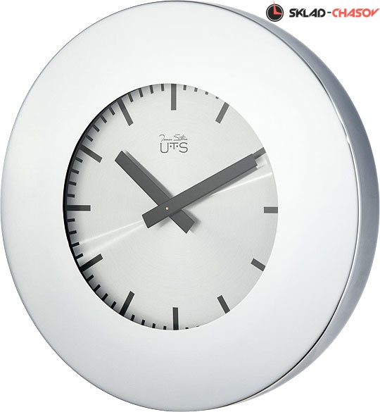 Настенные часы в глянцевом металлическом корпусе с широким ободком. Циферблат из шлифованного металла с нанесенными на него черными метками, закрыт стеклом. Матовые стрелки черного цвета. Кварцевый механизм Young Town (Гонконг). Требуется 1 батарейка типа АА (не включена в поставку).