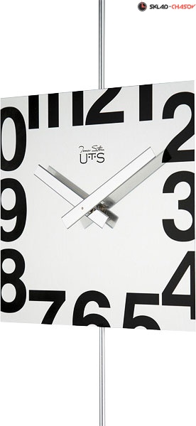 Настенные часы в шлифованном металлическом корпусе. Циферблат в виде металлической пластины с нанесенными на него черными арабскими цифрами. Позади циферблата - длинный маятник, выполненный из тонкой металлической трубки. Кварцевый механизм Young Town (Гонконг). Требуется 1 батарейка типа АА (не включена в поставку).