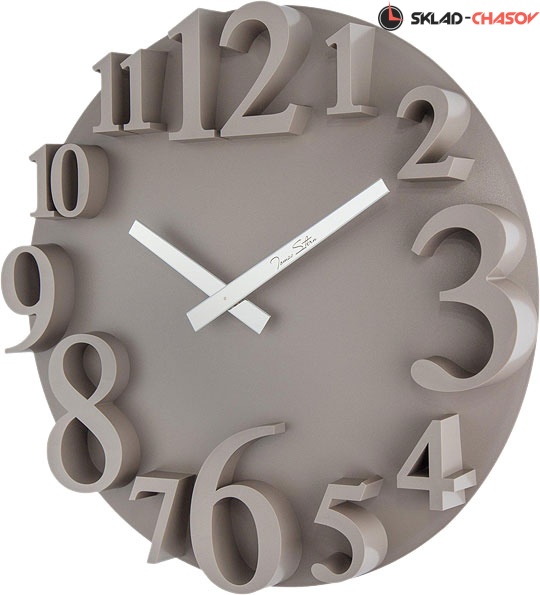 Настенные часы в пластиковом корпусе. Объемные арабские цифры образуют единое целое с циферблатом. Отделка стрелок - хром. Кварцевый механизм Young Town (Гонконг). Требуется 1 батарейка типа АА (не включена в поставку).