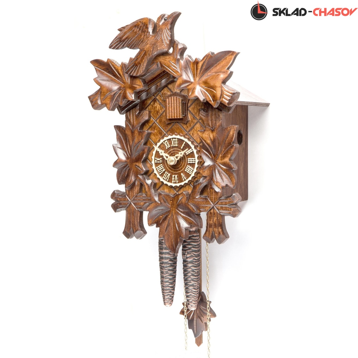 Механические настенные часы с кукушкой. Циферблат и стрелки выполнены из дерева.