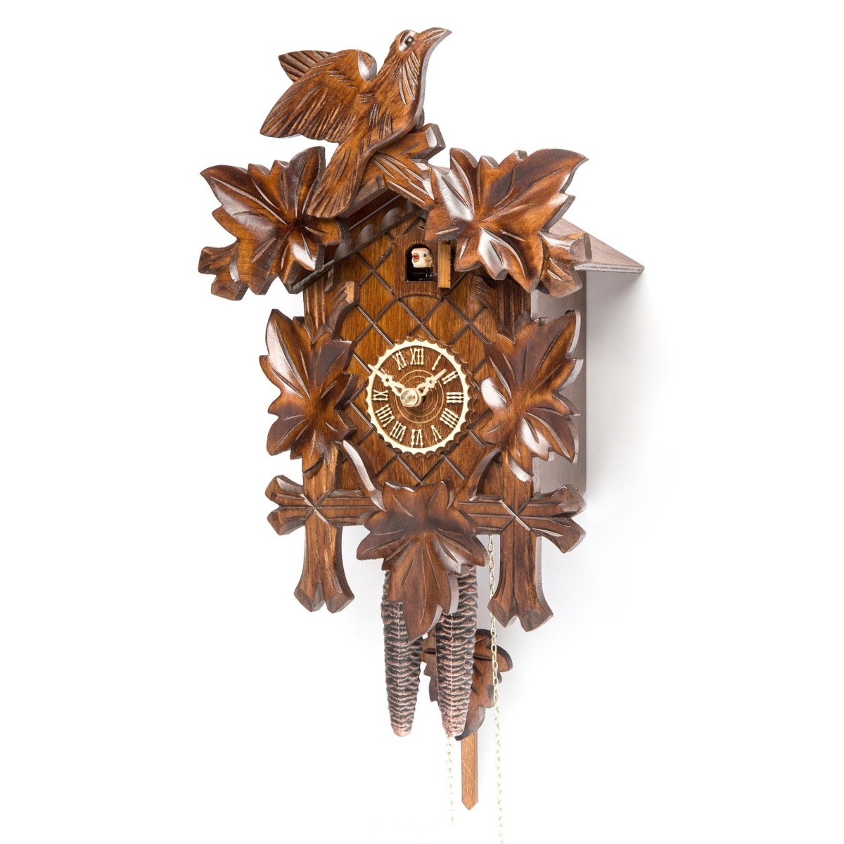 Механический механизм с однодневным запасом хода, прослужит вам долгте годы верой и правдой.Корпус выполнен из натурального дерева. Кукушка срабатывает каждый полный час. Отличительной особенностью этих часов является фотоэлемент, который обеспечивает автоматический переход в тихий режим в ночное время, т.е. кукушка не срабатывает. Временные рамки обозначены римскими цифрами.