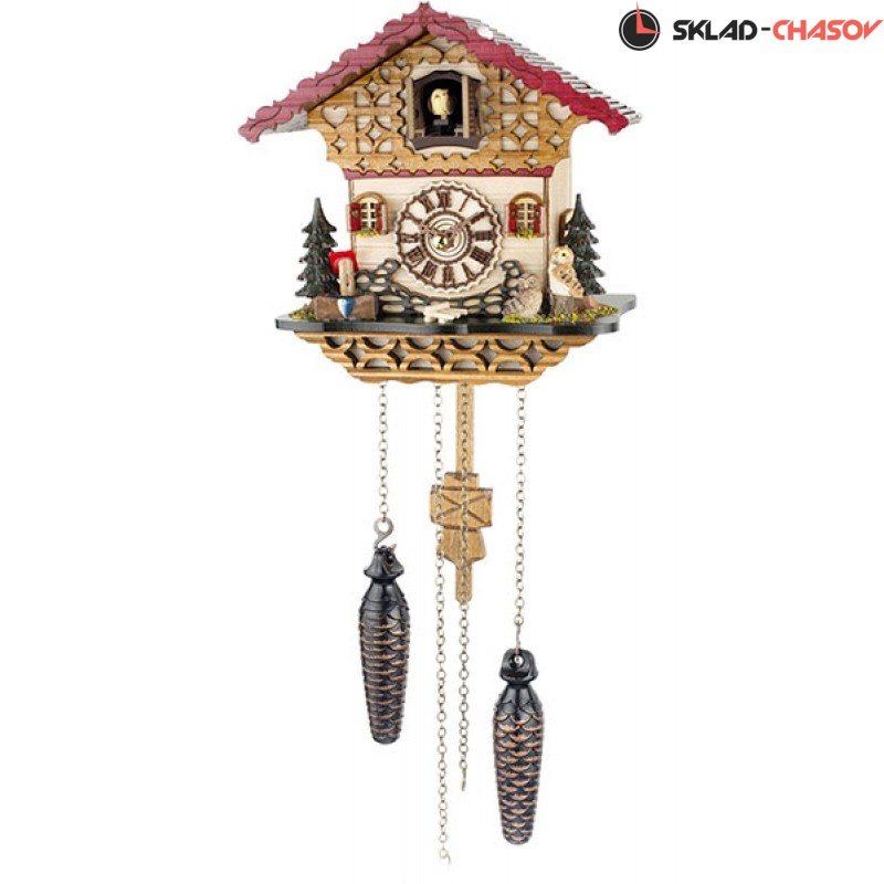 Кварцевые настенные часы с кукушкой и мелодией. Деревянный корпус украшен ручной росписью. Автоматическое отключение боя на ночь. Сделано в Германии.
