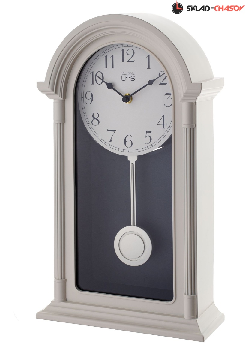 Кварцевые настенные часы с маятником в классическом корпусе из матового пластика молочного цвета. Механизм Young Town (Гонконг) с дискретным ходом, требуется 2 батарейки АА (не входят в поставку).