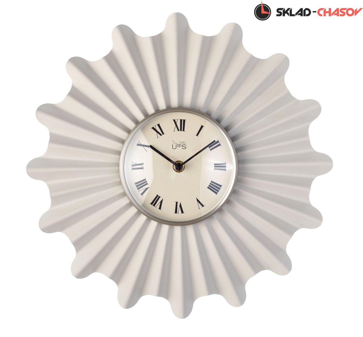 Настенные часы в объемном корпусе из металла. Циферблат закрыт сферическим стеклом. Кварцевый механизм Young Town (Гонконг) с дискретным ходом. Для работы механизма требуется 1 батарейка типа АА (не входит в поставку).