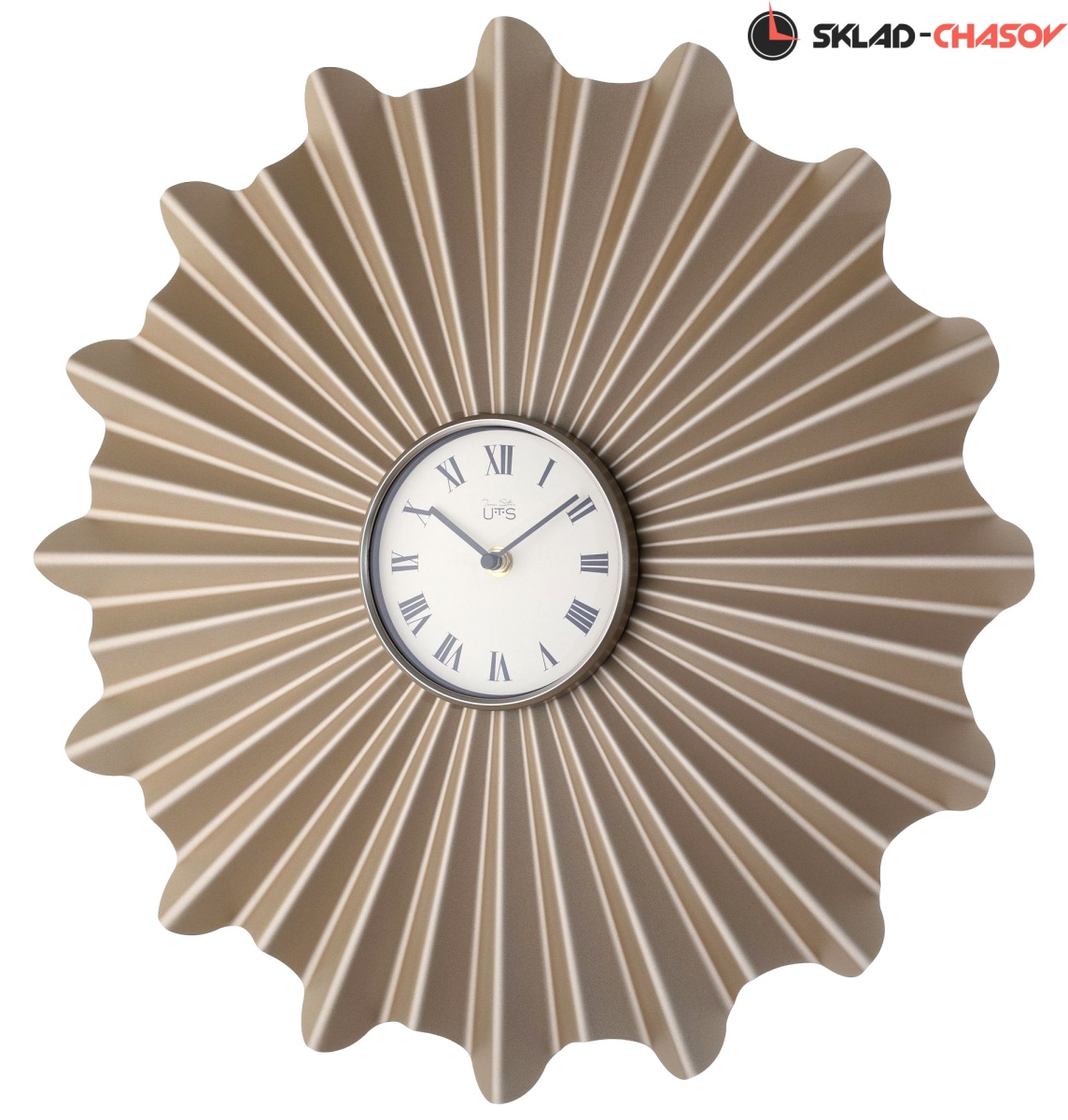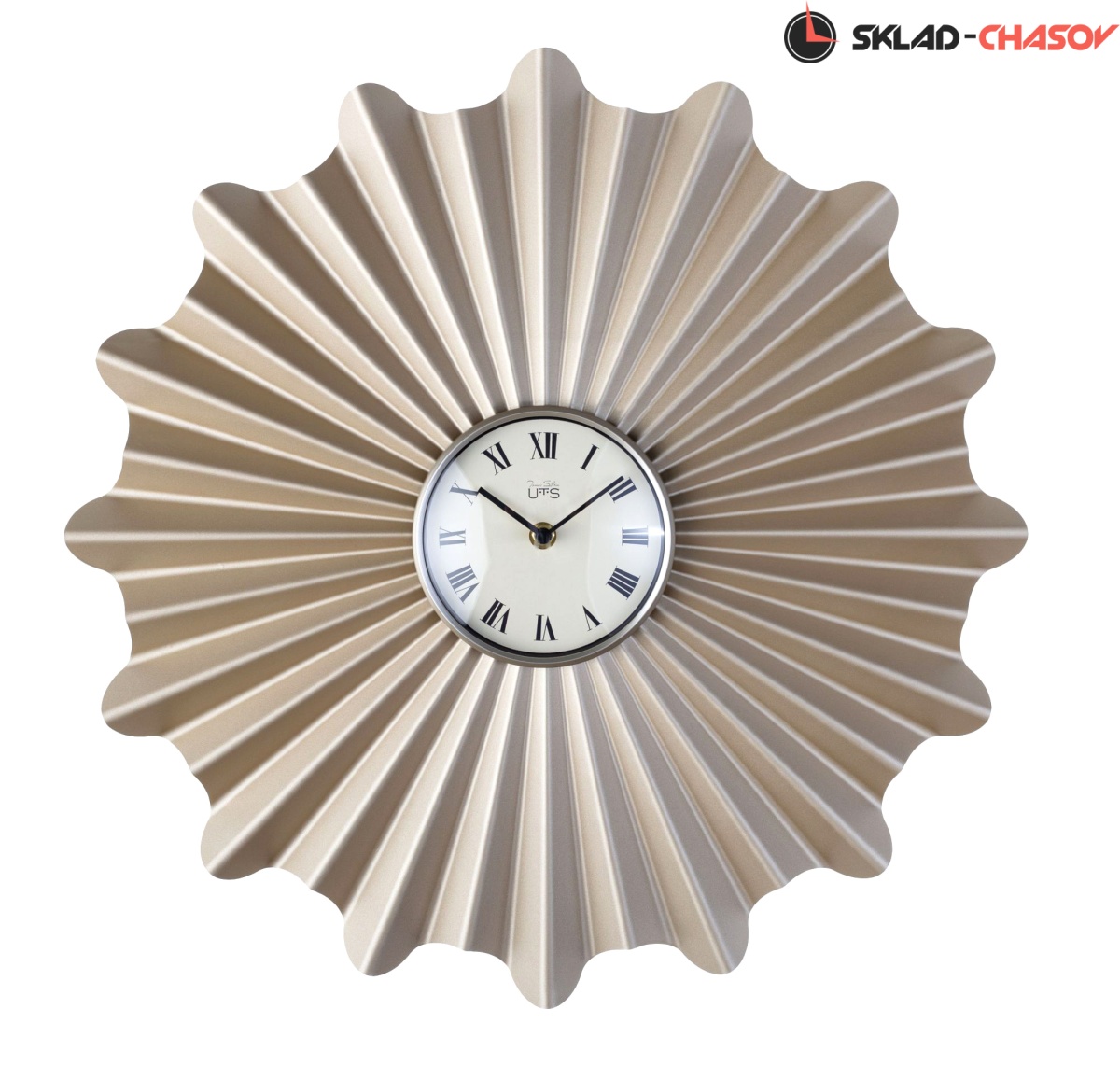 Настенные часы в объемном корпусе из металла. Циферблат закрыт сферическим стеклом.
