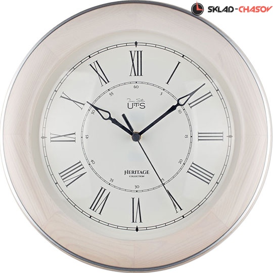 Элегантный корпус часов выполнен из массива сосны и тонирован в цвет выбеленного дерева с серебристой окантовкой. Циферблат закрыт сферическим стеклом. Бесшумный механизм с плавным ходом (Young Town). 1 батарейка АА (не прилагается).
