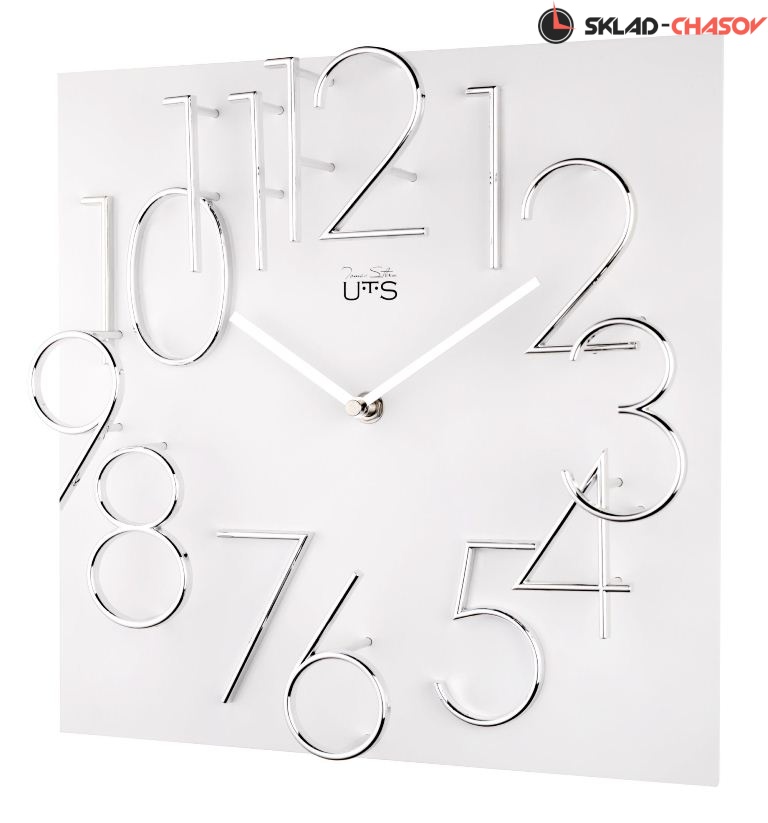 Кварцевые настенные часы в современном стиле. Эффектное сочетание белого основания и хромированых цифр отлично подойдет для хай-тек интерьера. Цифры расположены на разном уровне, что создает дополнительный объем. Корпус выполнен из МДФ, цифры из пластика. Механизм Young Town с бесшумным, плавным ходом.