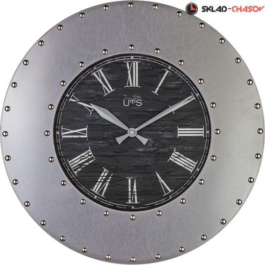 Кварцевые настенные часы. Корпус часов изготовлен из металла и украшен декоративными заклепками. Циферблат черного цвета искусственно состарен и закрыт стеклом. Механизм Young Town (Гонконг).
