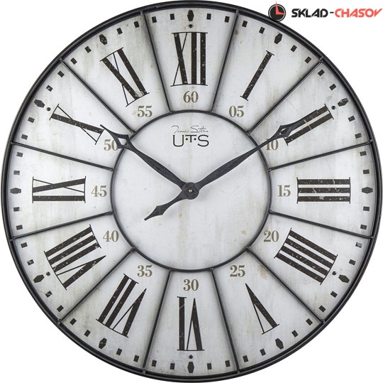Настенные часы большого диаметра в кованом металлическом корпусе, циферблат выполнен из МДФ. Кварцевый механизм Young Town (Гонконг). Требуется 1 батарейка типа АА (не включена в поставку).