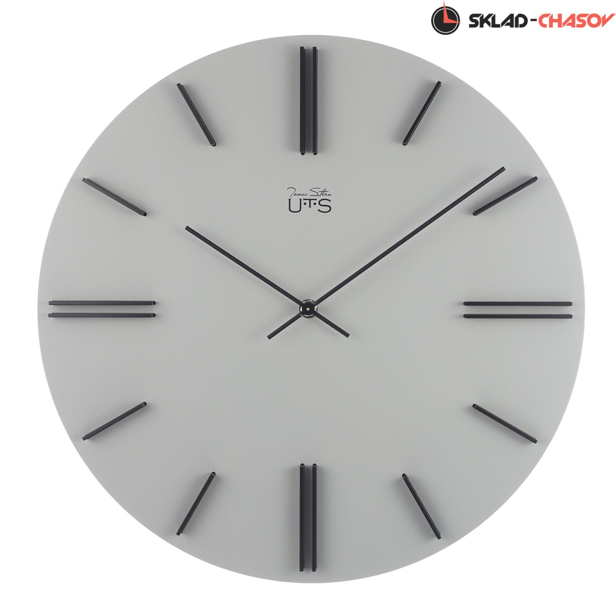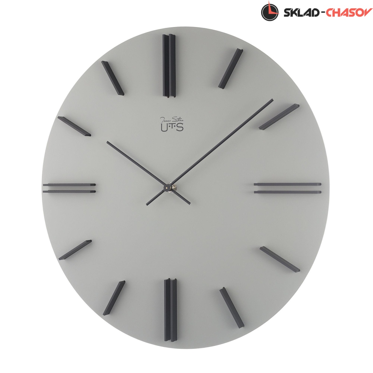 Настенные часы в лаконичном современном стиле. Основная часть корпуса выполнена из МДФ и тонирована в холодном сером цвете. Часовые индексы выполнены из матового алюминия, тонированы в черном цвете и установлены в филигранно выполненные ложементы на корпусе. Тонкие и изящные стрелки черного цвета прекрасно завершают образ часов. Кварцевый механизм Young Town (Гонконг). Требуется 1 батарейка типа АА (не включена в поставку).