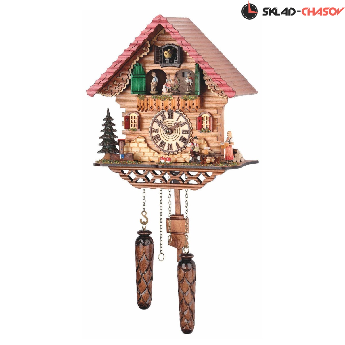 Кварцевые настенные часы с кукушкой + 12 мелодий. Автоматическое отключение боя на ночь. Деревянный корпус часов росписан вручную. Фигурки танцоров вращаются. Мелодии: 1. Music Box Dancer 2. Muss i denn zum... 3. Zhivago-Melodie 4. Mühle im Schwarzwald 5. Bacarole 6. Ich weiss nicht, was soll es bedeuten 7. Oh mein Papa 8. Fröhlicher Wanderer 9. Que sera 10. Edelweiss 11. Für Elise 12. Clementine Сделано в Германии.