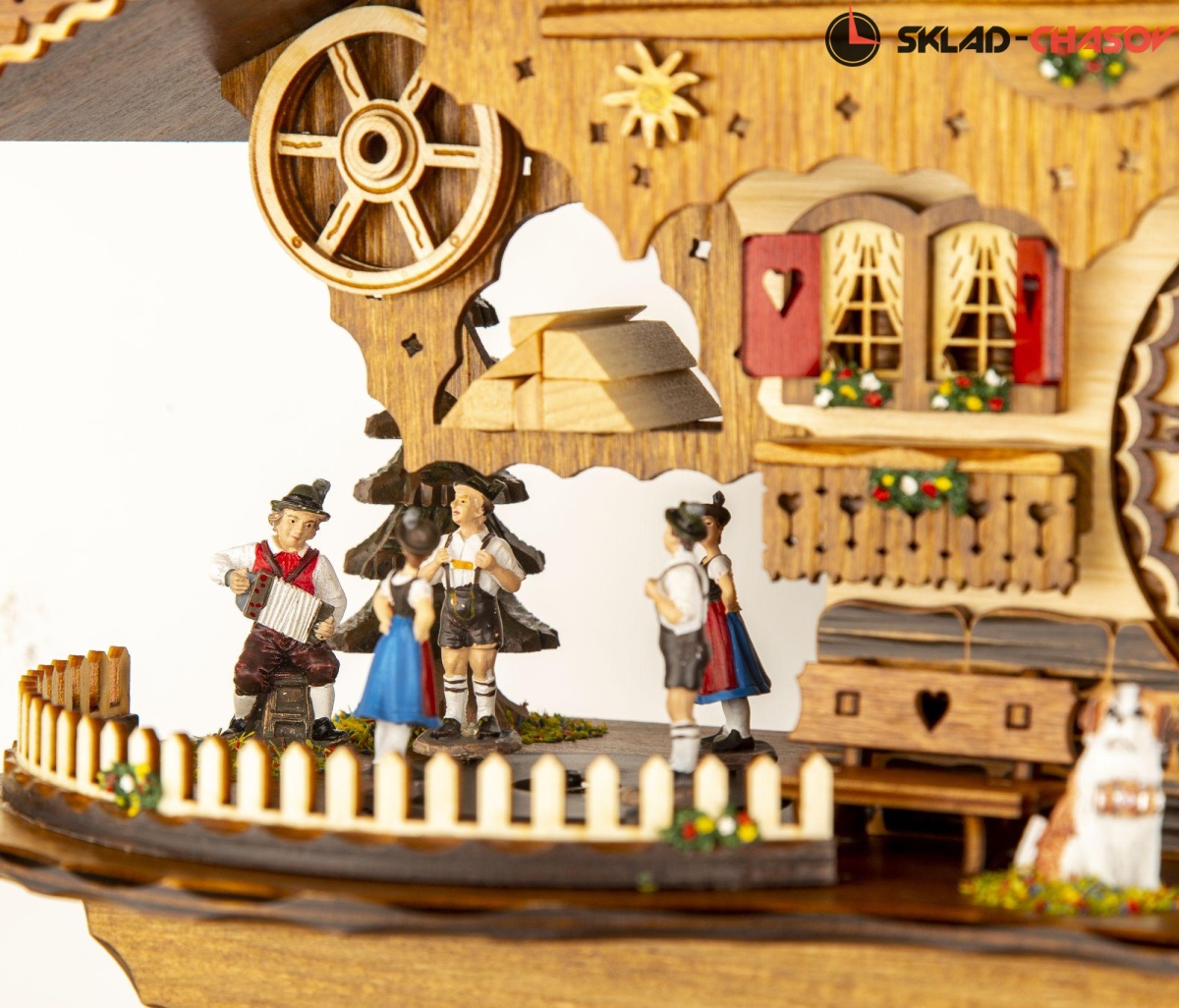 Деревянный корпус часов росписан вручную.