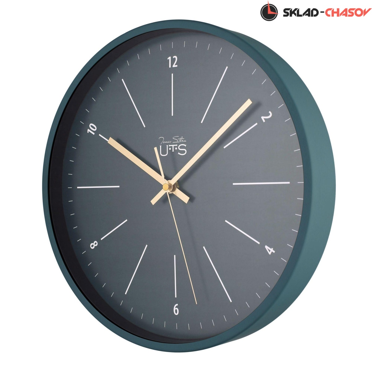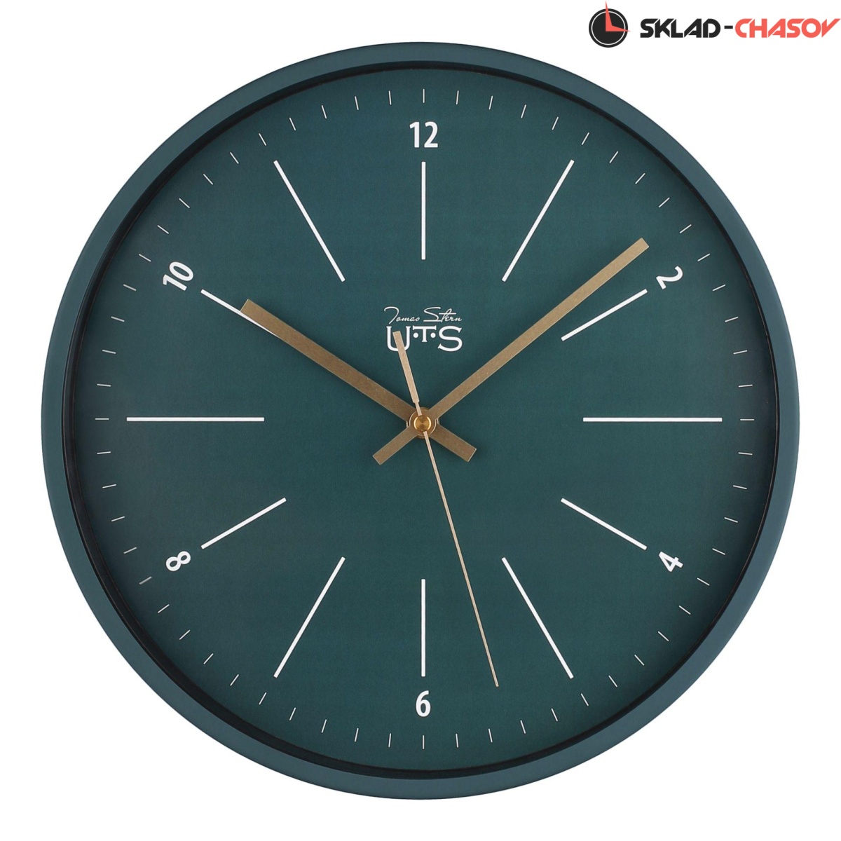 Кварцевые настенные часы. Стальной корпус матового темно-зеленого цвета. Темно-зеленый циферблат с контрастными белыми часовыми и минутными индексами закрыт стеклом. Механизм с плавным ходом секундной стрелки. Необходим 1 элемент питания типа АА (в комплект не входит).