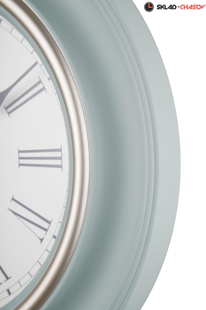 Кварцевые настенные часы. Матовый пластиковый корпус нежного серо-голубого цвета. Белый циферблат с крупными римскими цифрами прекрасно виден на расстоянии. Циферблат дополняют изящные пикообразные стрелки черного цвета. Стрелки и циферблат закрыты минеральным стеклом. В часах установлен тихий, точный и надежный механизм Young Town 12888 c дискретным ходом. Необходим 1 элемент питания типа АА (в комплект не входит).