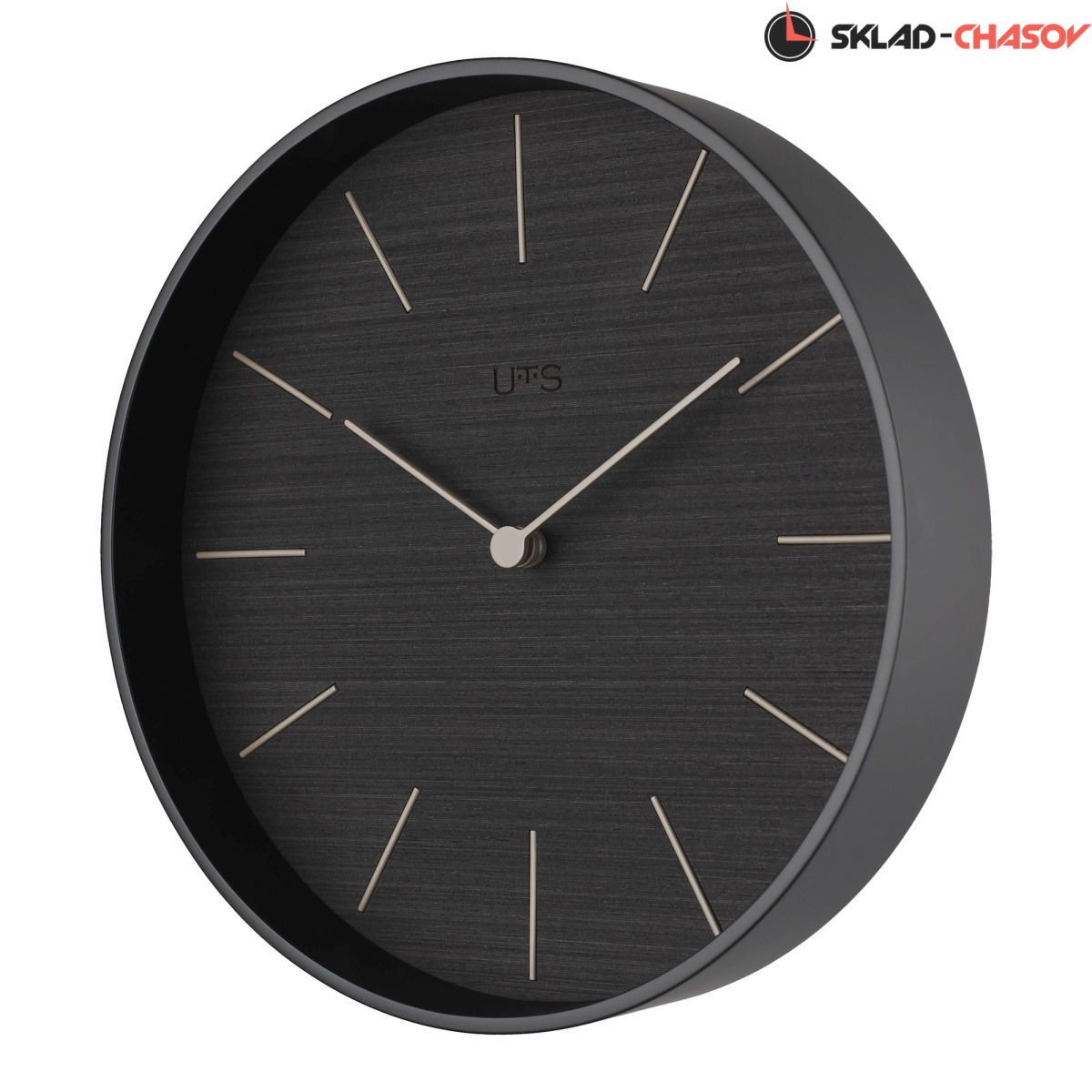 Кварцевые настенные часы. Обод часов выполнен из фанеры и тонирован в черном цвете. Циферблат покрыт натуральным шпоном и тонирован в черном цвете. Объемные часовые индексы сделаны из пластика серого цвета и аккуратно утоплены в специальных ложементах. Стрелки часов сделаны из дерева и, также, тонированы в сером цвете. В часах установлен тихий, точный и надежный механизм Young Town 12888 c дискретным ходом. Необходим 1 элемент питания типа АА (в комплект не входит).