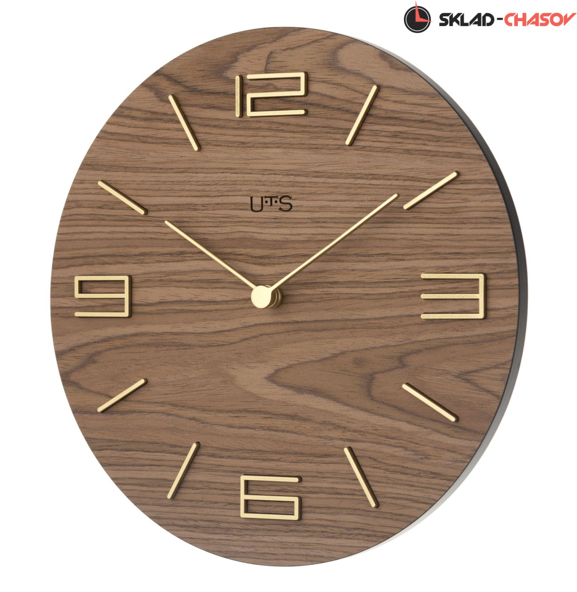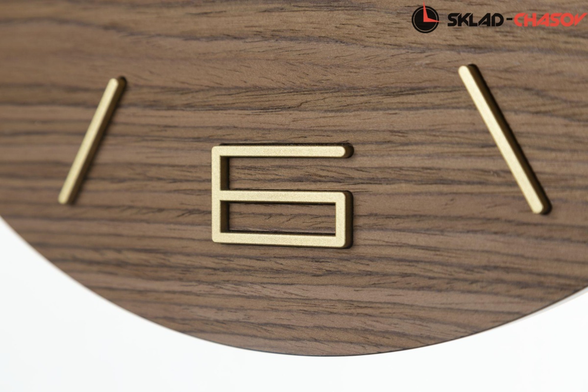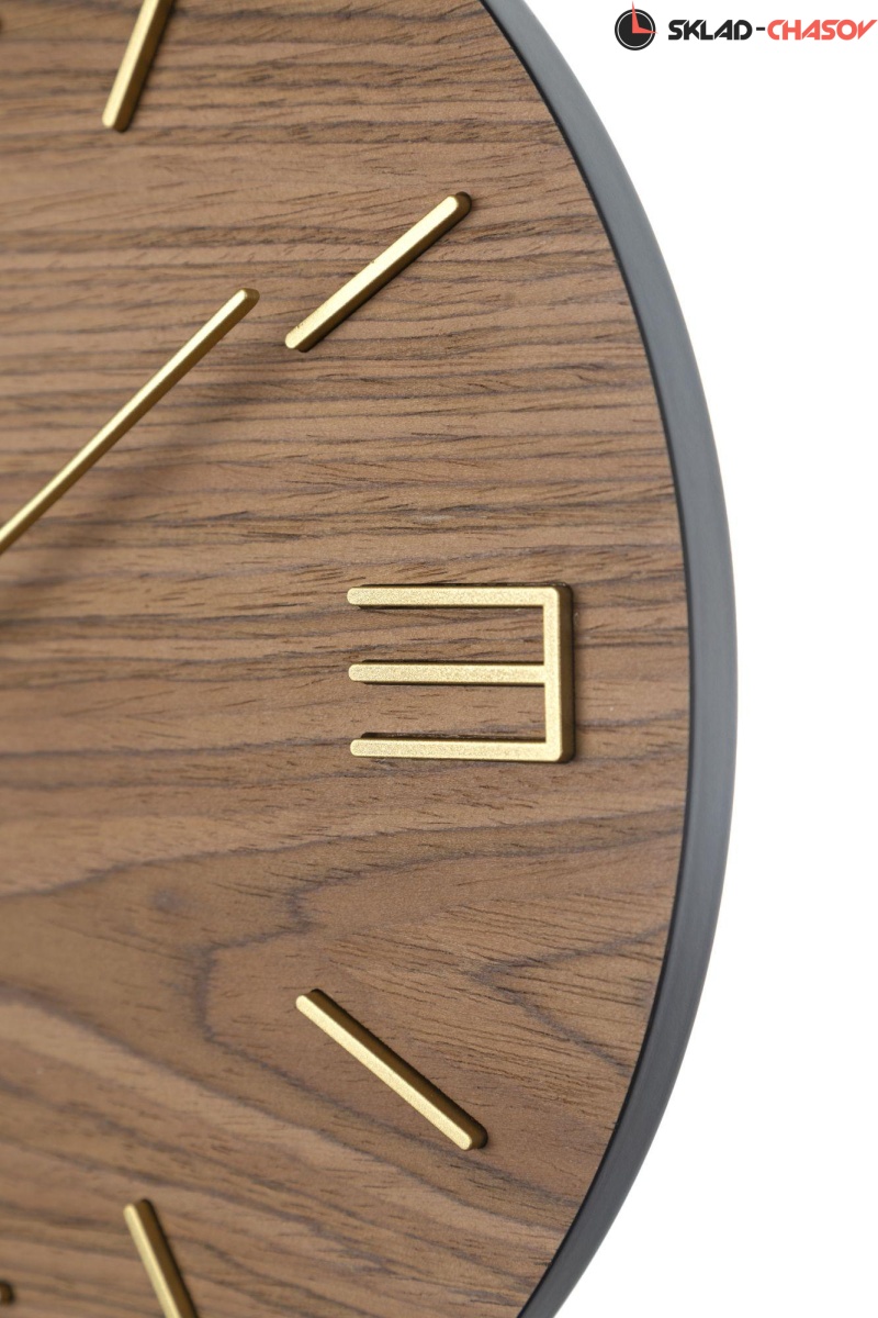 Кварцевые настенные часы. Корпус выполнен из МДФ черного цвета. Циферблат покрыт натуральным шпоном палисандра, тонированным в цвете "молочный шоколад". Объемные часовые индексы сделаны из пластика золотого цвета и аккуратно утоплены в специальных ложементах. В часах установлен тихий, точный и надежный механизм Young Town 12888 c дискретным ходом. Необходим 1 элемент питания типа АА (в комплект не входит).