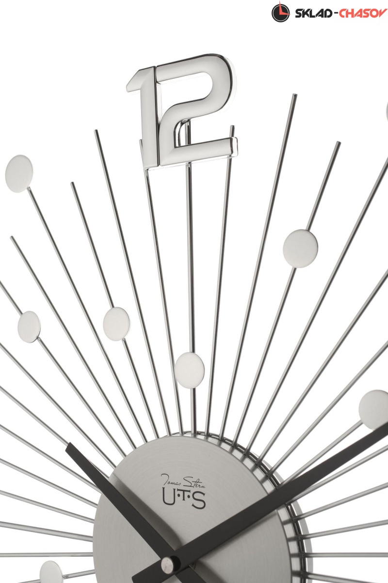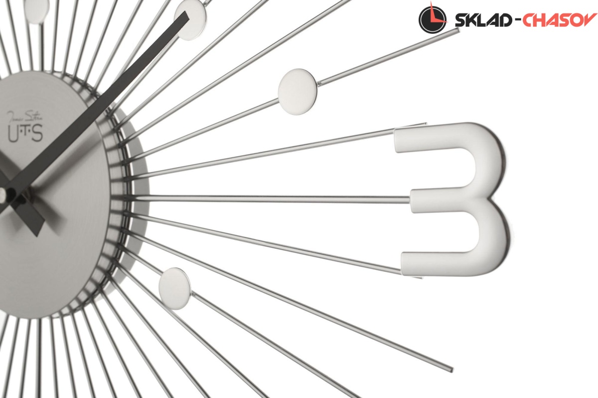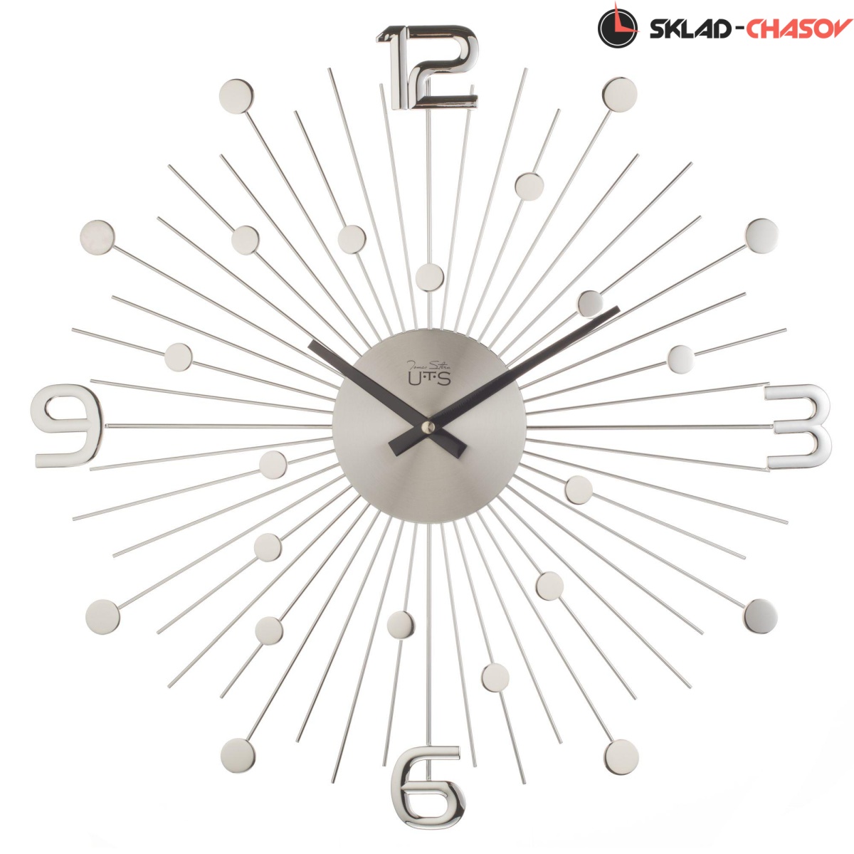 Кварцевые настенные часы в современном стиле. Металлические спицы украшены круглыми металлическими фишками сферической формы. Цифры 3, 6, 9 и 12 выполнены из глянцевого пластика. Механизм с плавным ходом. Необходим 1 элемент питания типа АА (в комплект не входит).