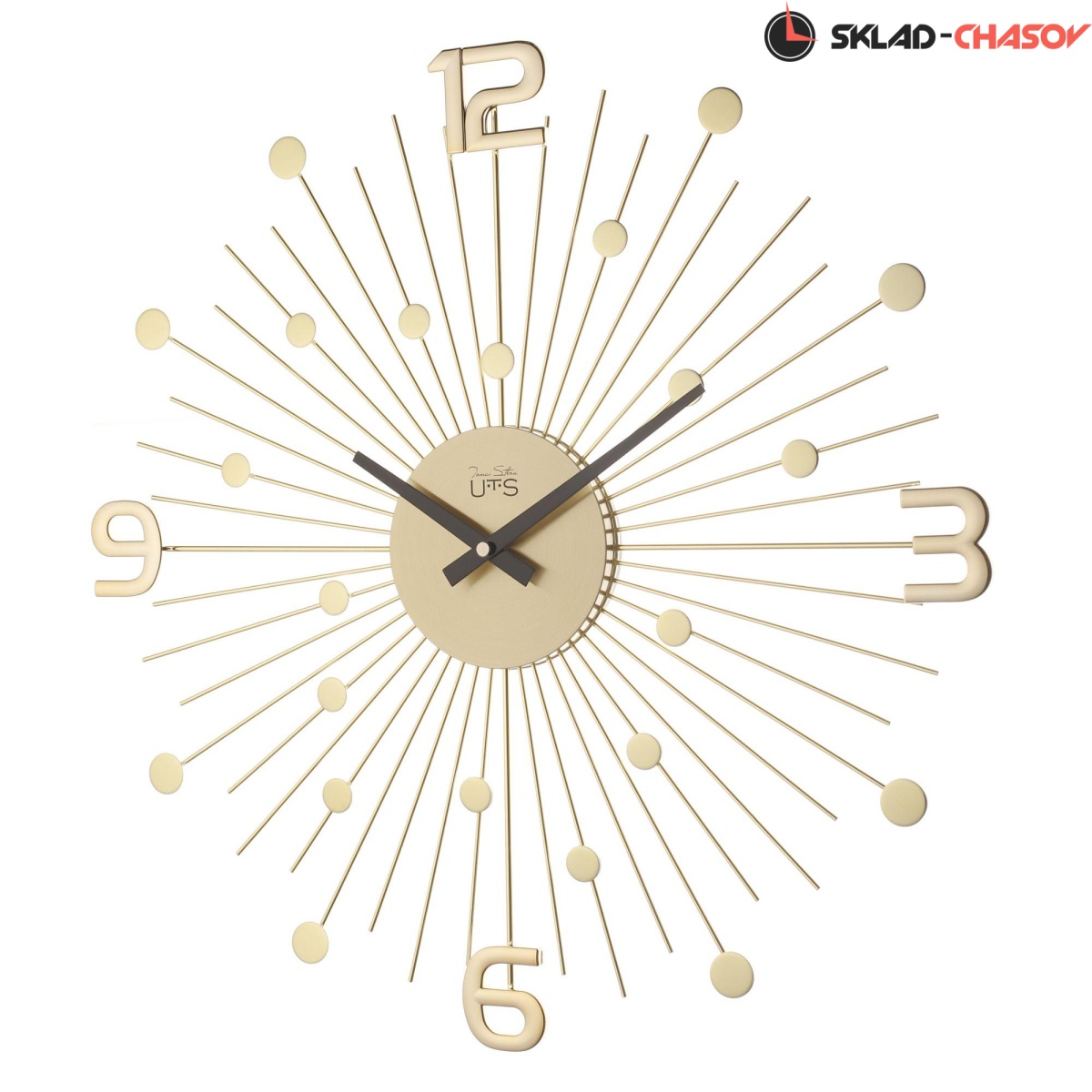 Кварцевые настенные часы в современном стиле. Металлические спицы украшены круглыми металлическими фишками сферической формы. Цифры 3, 6, 9 и 12 выполнены из глянцевого пластика. Механизм с плавным ходом. Необходим 1 элемент питания типа АА (в комплект не входит).