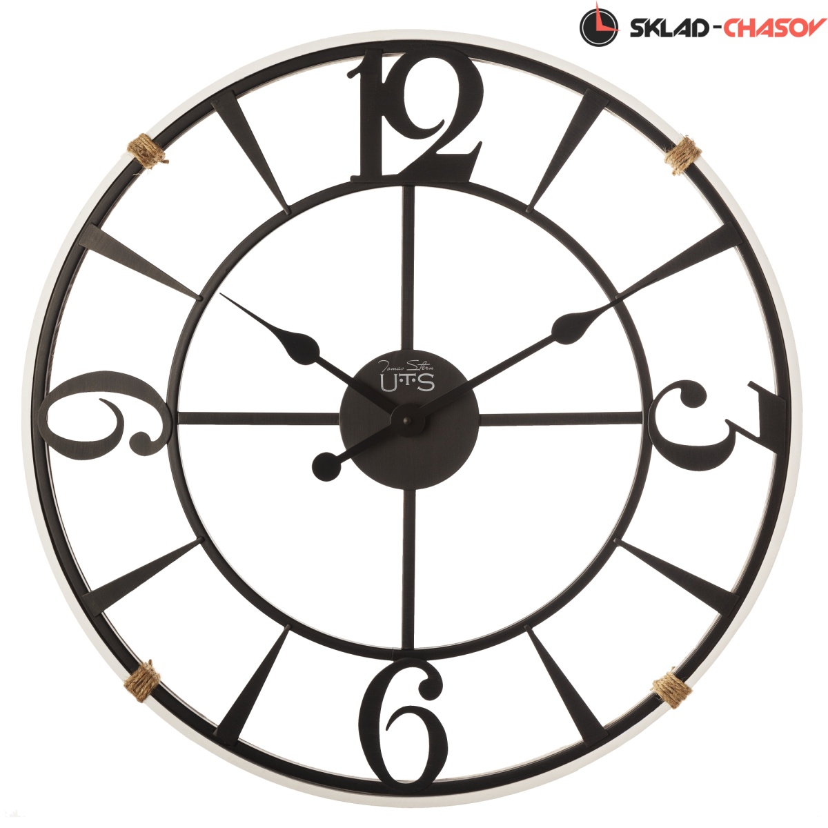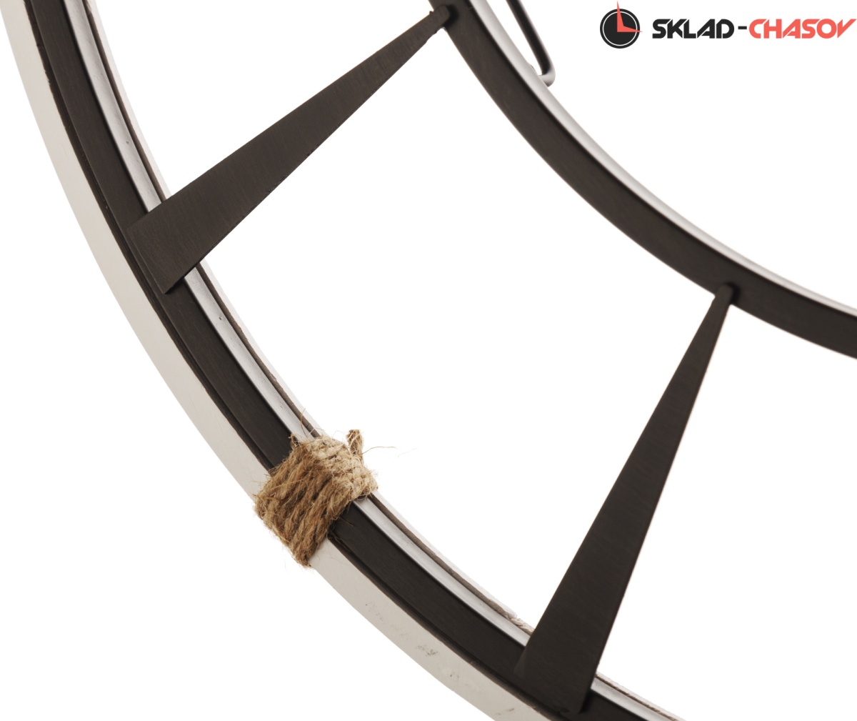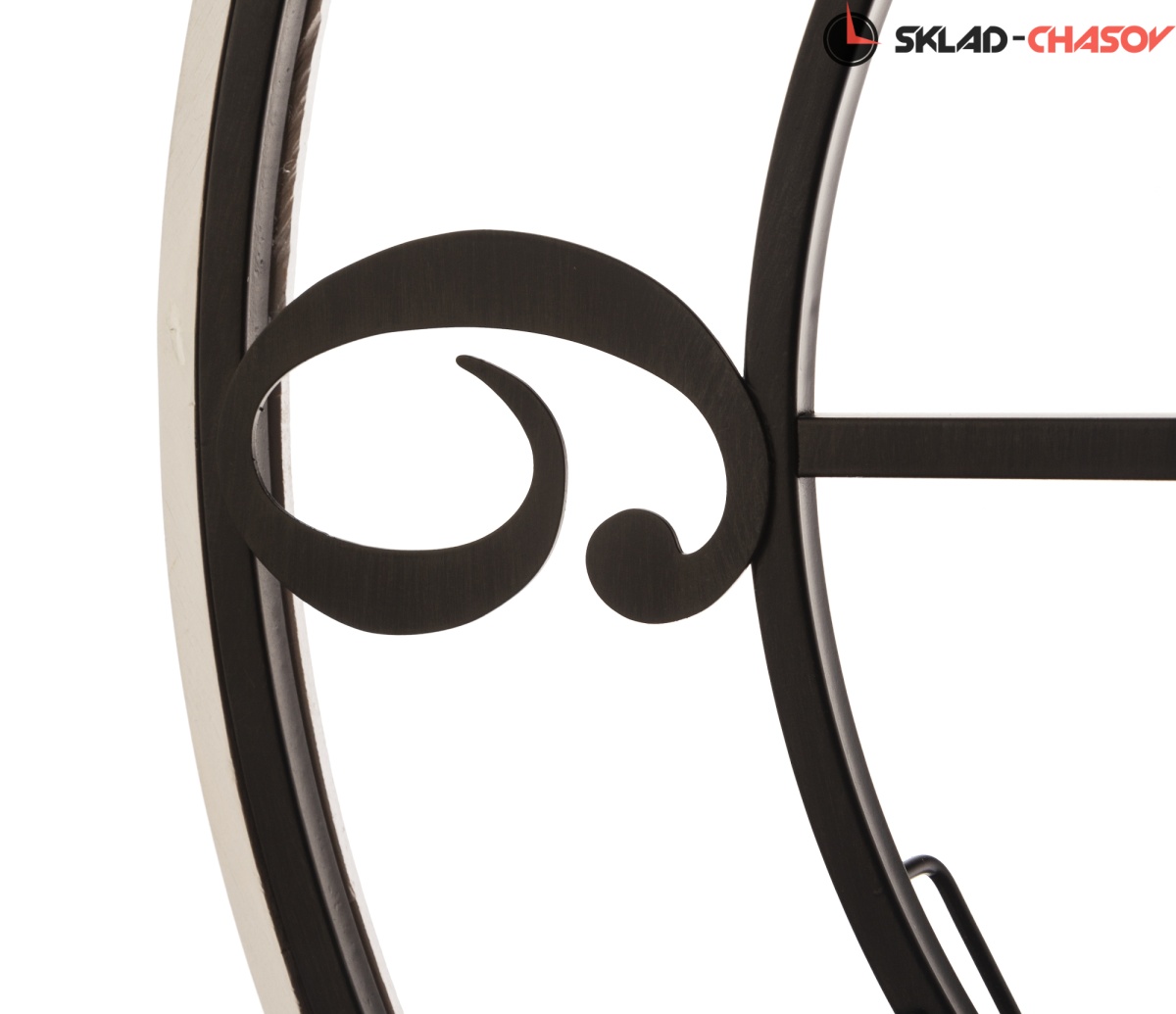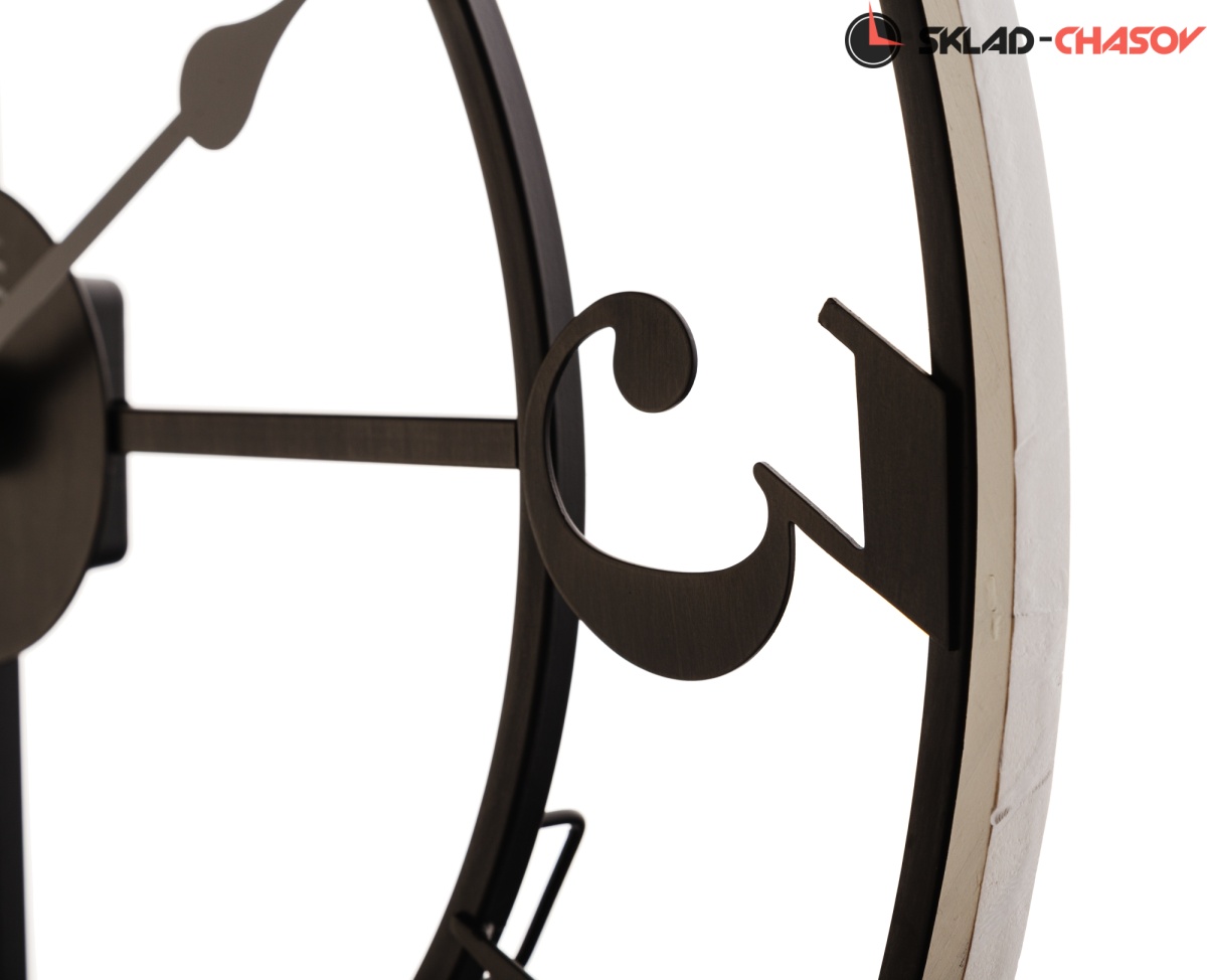 Черный металлический корпус обрамляет контрастный обод из МДФ белого цвета.