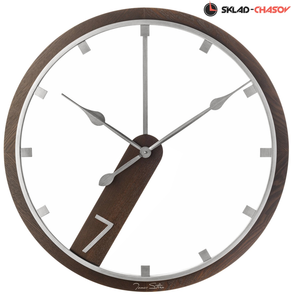 Металлическая основа корпуса и часовые метки отделаны в цвете никель.