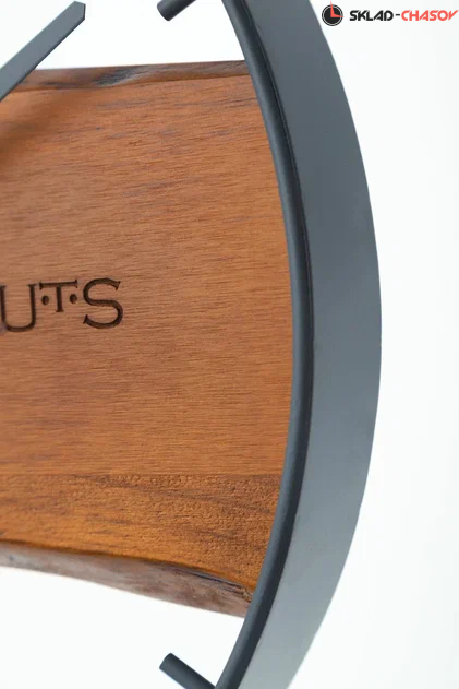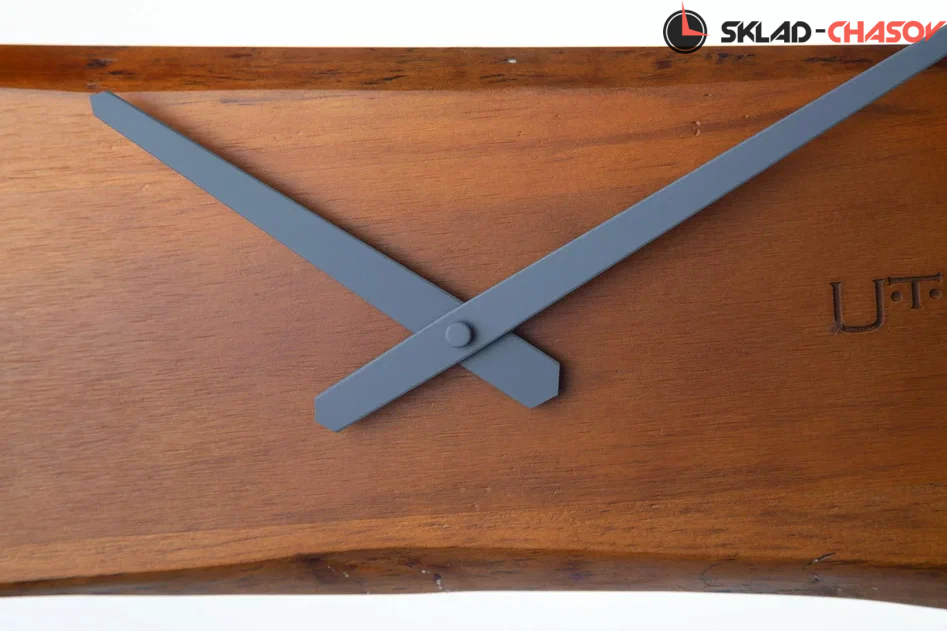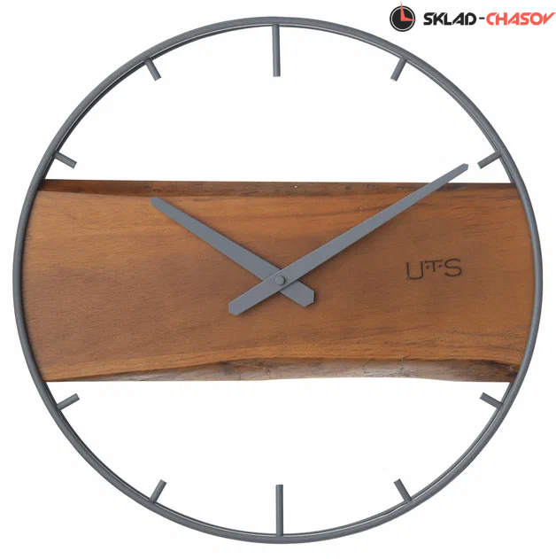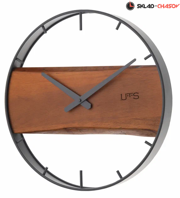 Оригинальные кварцевые настенные часы. Центральная часть корпуса выполнена из массива дерева и тонирована в цвете акация. Обод часов выполнен из металла и покрашен в темно-серый цвет. Прямые металлические стрелки покрашены под цвет ободка и прекрасно дополняют общий вид часов.