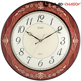 Настенные часы в деревянном полированном корпусе с инкрустацией марки Восток-Vostok, с кварцевым механизмом