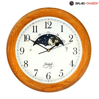 Настенные часы в деревянном корпусе цвета дуба марки Восток-Vostok, с кварцевым механизмом и лунным календарем