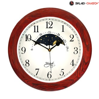 Настенные часы в деревянном корпусе цвета вишни марки Восток-Vostok, с кварцевым механизмом и лунным календарем