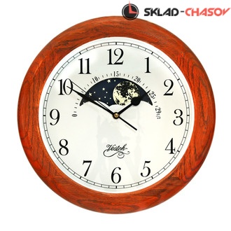 Настенные часы в деревянном корпусе цвета черешни марки Восток-Vostok, с кварцевым механизмом и лунным календарем