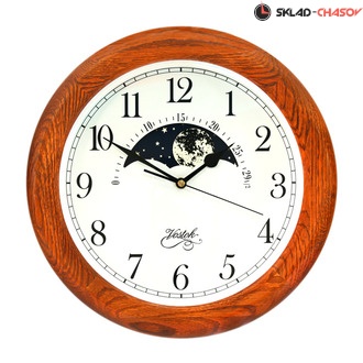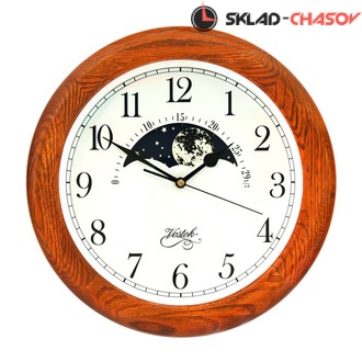 Настенные часы в деревянном корпусе цвета тика марки Восток-Vostok, с кварцевым механизмом и лунным календарем