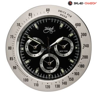 Настенные металлические часы марки Восток-Vostok, с кварцевым механизмом , выполненные в стиле наручных. Светонакопительное покрытие меток циферблата. 3 дополнительных циферблата.