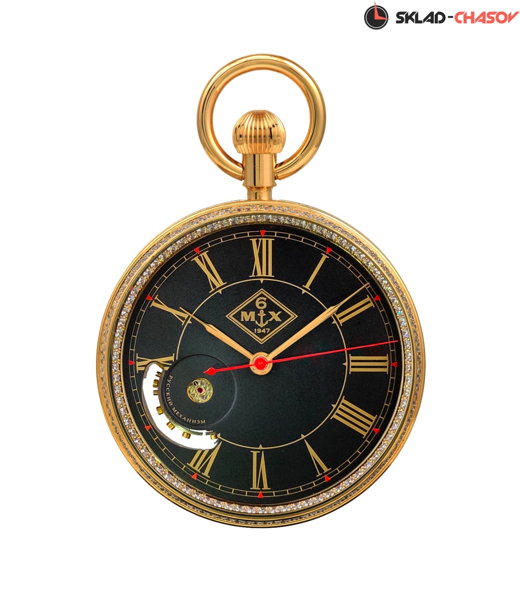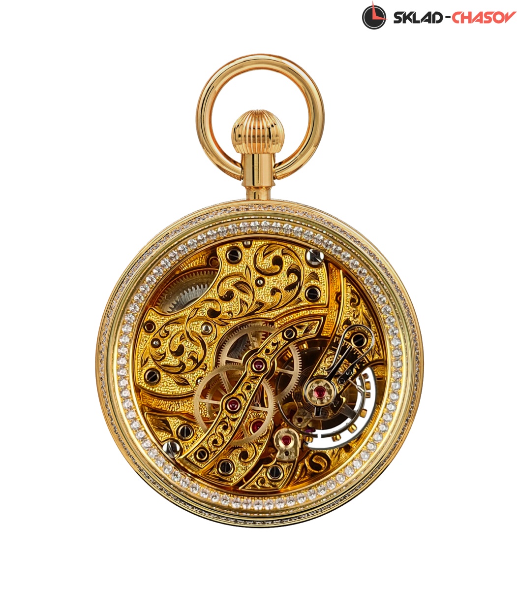 Часы изготовлены из латуни с позолотой и украшены 945 фианитами. (О возможности изготовления часов в корпусе из драгоценных металлов уточняйте у представителей завода).