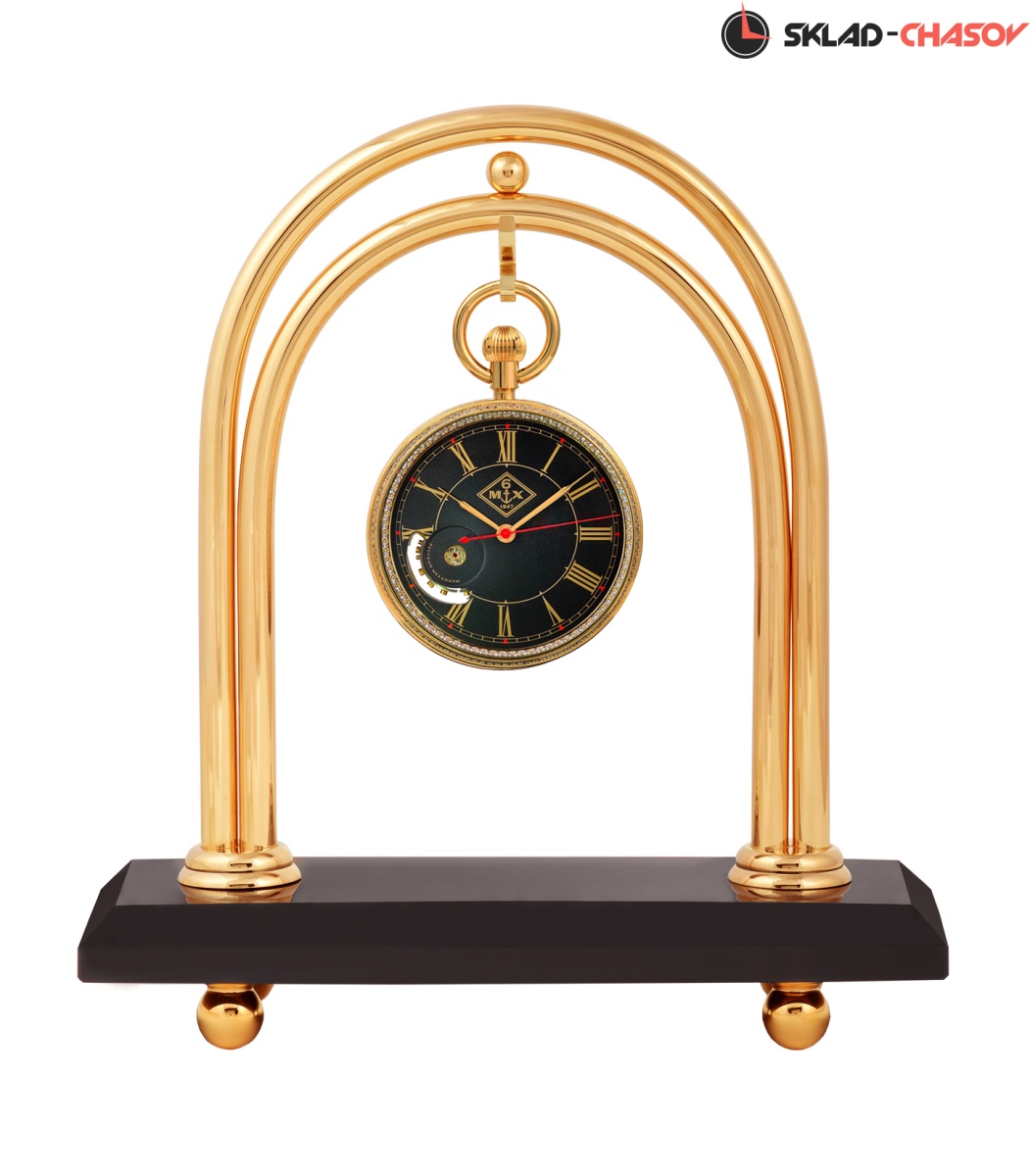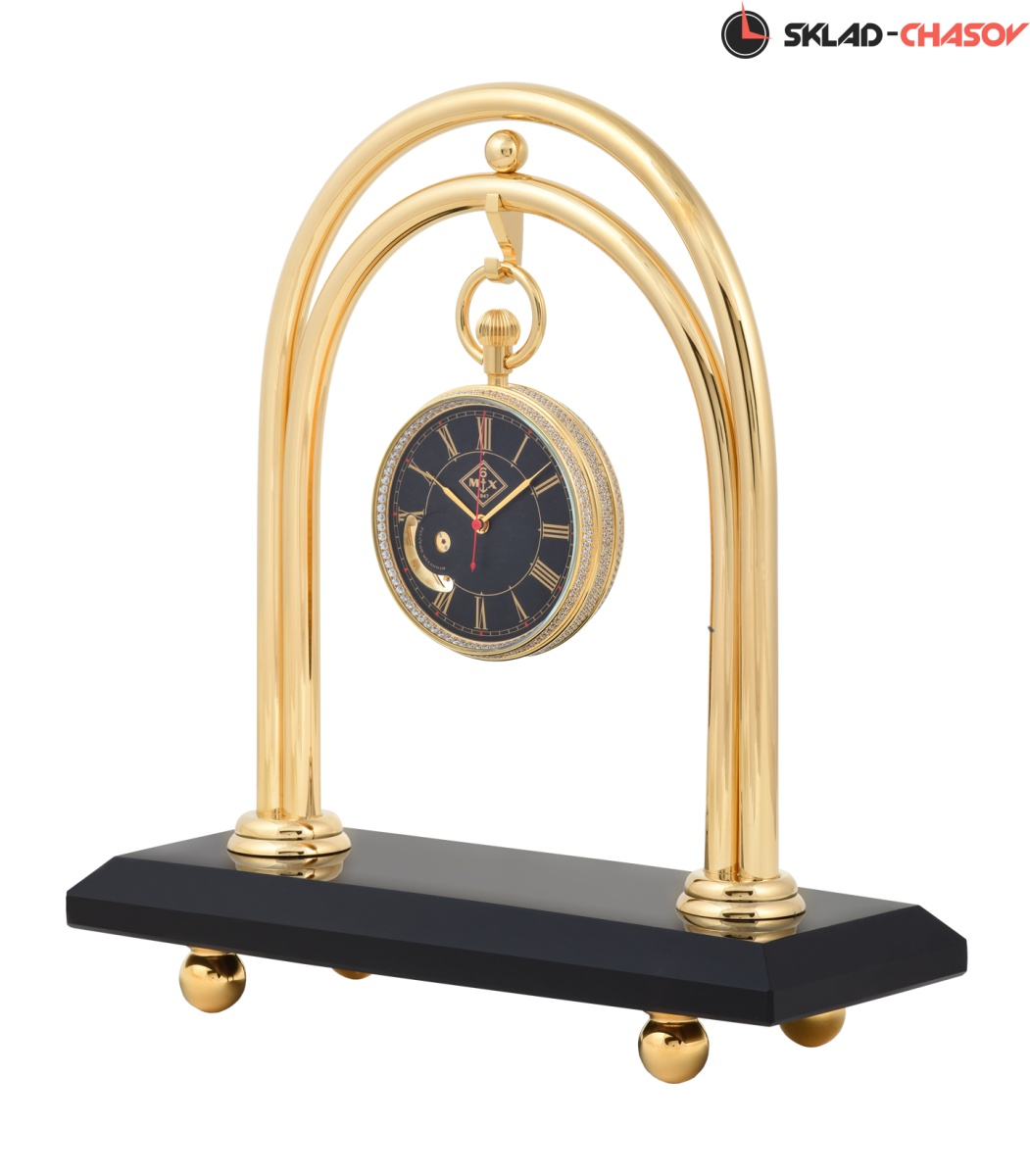 Часы крепятся на подставке из латуни с позолотой с обсидиановым основанием. (При желании, можно приобрести отдельно часы без подставки).