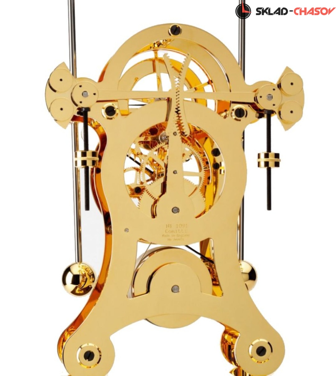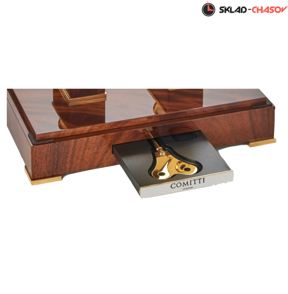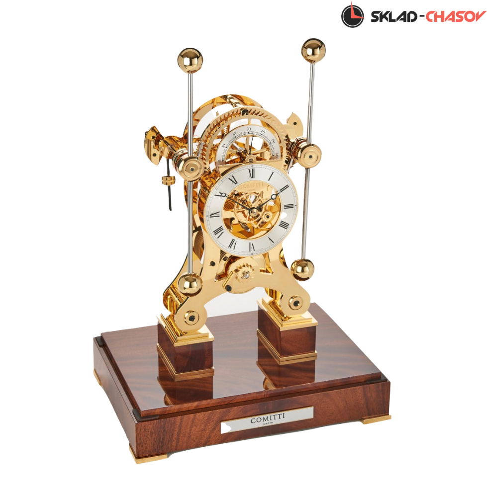 Классическая модель часов Navigator grasshopper, сочетающая позолоченный механизм и основание из красного дерева.
