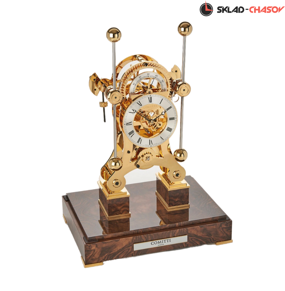Классическая модель часов Navigator grasshopper, сочетающая позолоченный механизм и основание из орехового дерева.