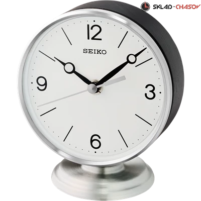 Часы Seiko qxg150s настольные в алюминиевом корпусе с элегантной отделкой и отделкой из черного дерева шпон из ясеня. Циферблат белого цвета с арабскими цифрами и стрелками черного цвета.