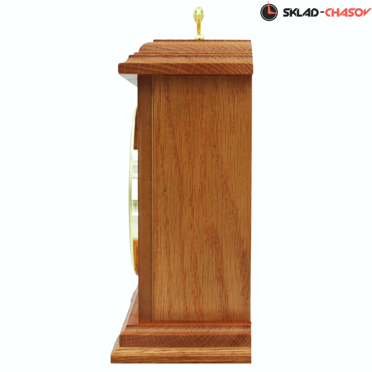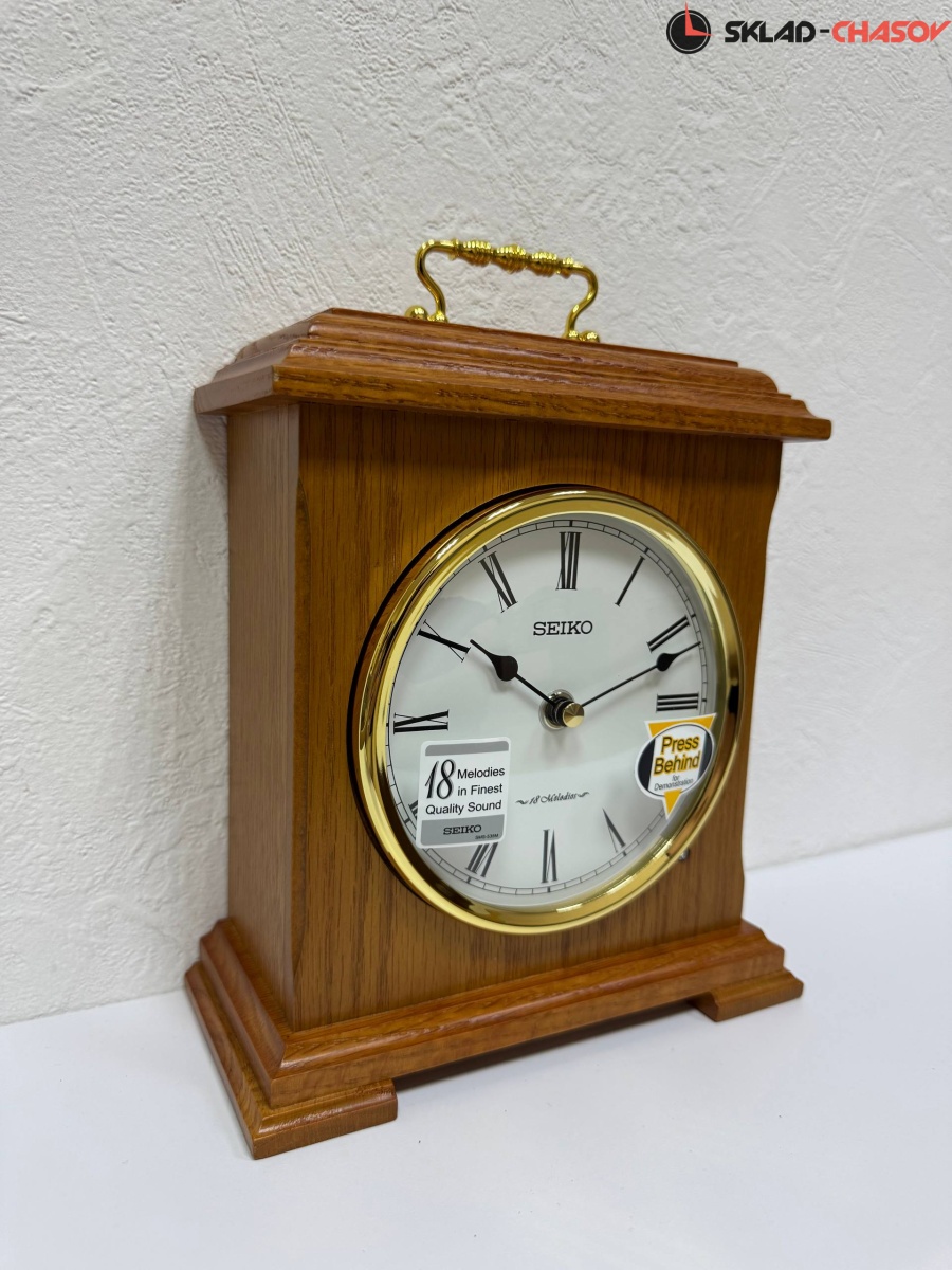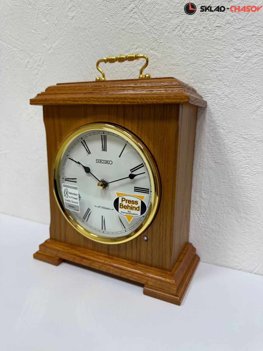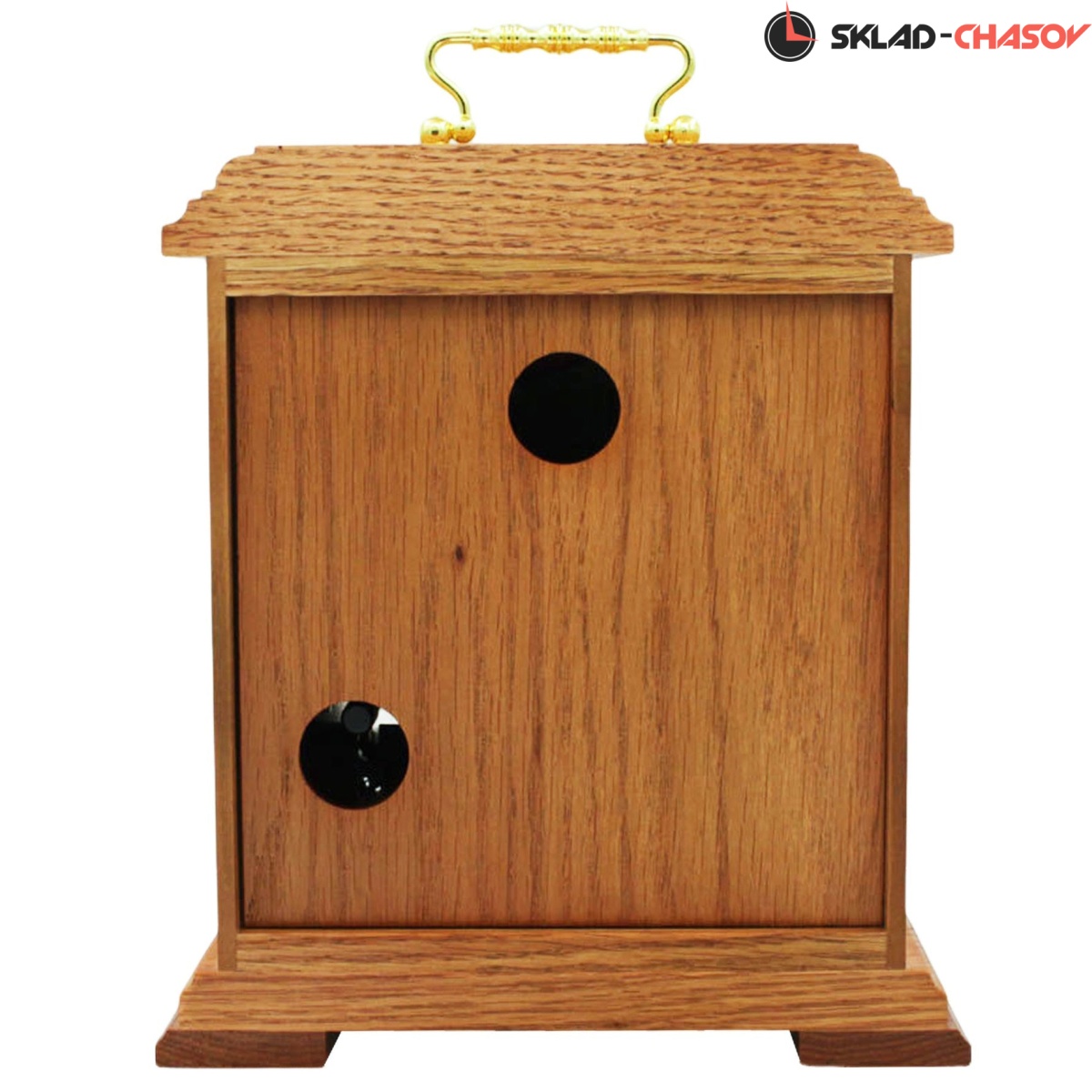 Эти классические часы в стиле каретки с отделкой из теплого дерева, украшенной золотистой ручкой и безелем. Часы с аналоговым циферблатом (стрелки). Стрелки: черная часовая, черная минутная. Циферблат белый с римскими цифрами. Одна из 18 Hi Fi мелодий каждый час (The Four Seasons "Весна", Kanon, "Кляйне Нахтмузык", Симфония №6 "Пастораль", "Утро из оперы "Пер Гюнт", "Травиата" "Застольная песня", Удивительная грация Планеты "Юпитер", Вальс цветов, Приветствие любви, Картины с выставки "Променад", Танец тростниковых дудочек, Украсьте залы, О Танненбаум, Мы желаем Вам Веселого Рождества, Радости Миру, Тихой ночи, Звенят Колокольчики). Регулятор громкости и датчик освещенности (отключают воспроизведение мелодий в темноте). Корпус выполнен из дерева. Бесшумный механизм.