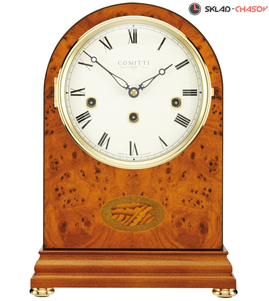 Популярный арочный корпус с механизмом вестминстерских курантов. Тисовый корпус ручной полировки, облицованный тисовым шпоном и инкрустированный ракушками.