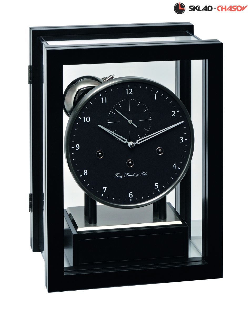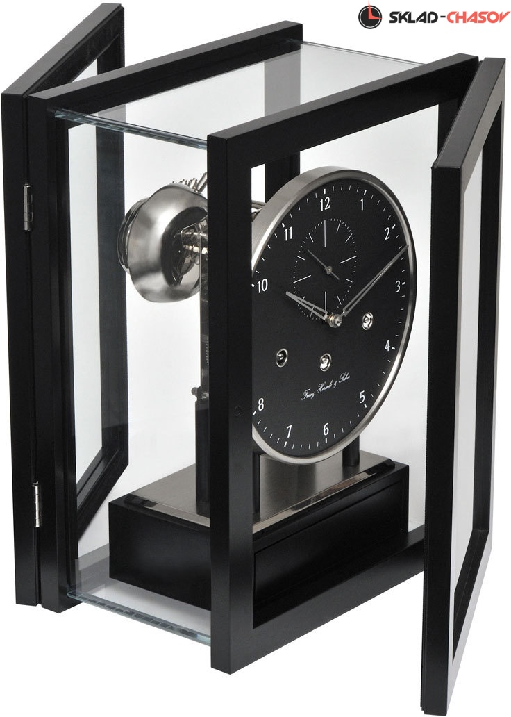 Часы настольные механические Hermle 22994-740352 c боем и мелодией имеют надежный механизм. Интерьерная модель. Имеют немецкий пружинный механизм Hernle с 8-ми дневным заводом (ключ). 11 камней, швейцарский анкерный механизм. Корпус из дерева в черное дерево), металла и стекла. Бой каждый час удары по количеству полных часов, получасовой бой, мелодия Westminster каждую четверть часа. Ручное и автоматическое отключение мелодии и боя. Оригинальный дизайн позволит вам наблюдать работу механизма с любой стороны. Это современные настольные механические часы с открытым механизмом, никелированный массивный механизм на никелированной латунной подставке серебристого цвета. Дизайн настольных часов 22994-740352 выполнен Гансом Габриэлем Шроллом. Секундная стрелка вынесена на отдельный циферблат. Имеется ящик для хранения заводного ключа. Уникальные настольные часы, которые завораживают даже самых чуждых к часовому искусству людей! Характеристики часов Hermle 22994-740352 Размер часов: 36х26,5х10 см. Материал: дерево (черное дерево),стекло. Производство: Германия. Гарантия: 2 года.