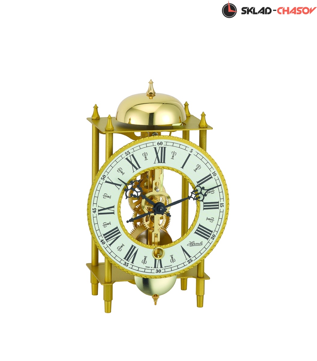Настольные часы Hermle 23004-000711: имеют надежный немецкий пружинный механизм. Открытый скелетонизированный механизм. Регулятор хода - маятник. Длительность завода 8 дней. Бой каждый час. Материал корпуса - латунь.