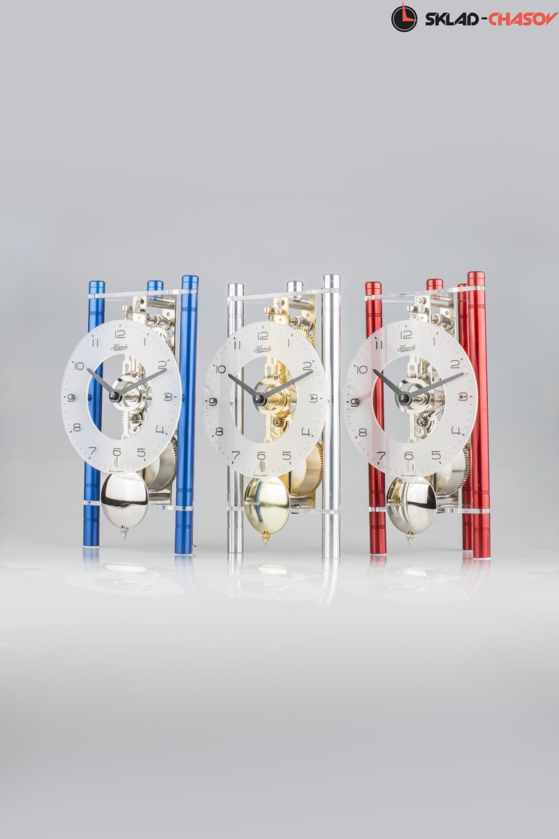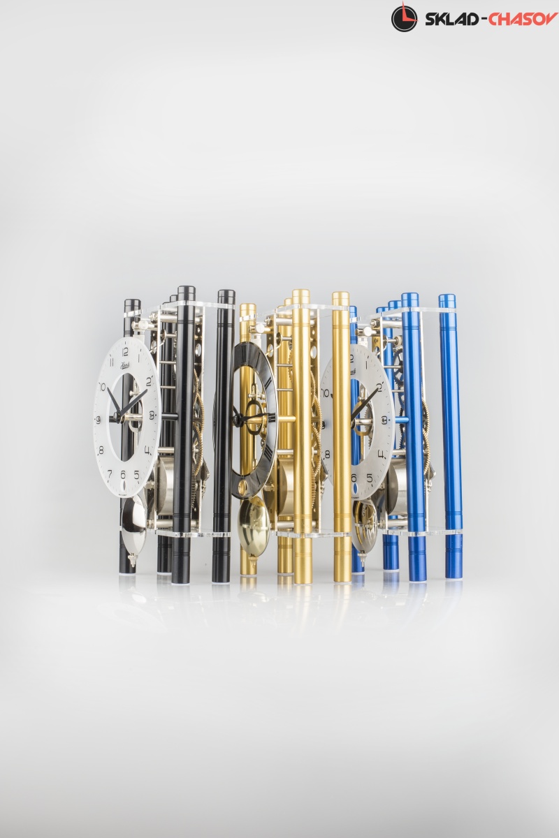 Современные дизайнерские механические настольные часы с металлическим корпусом. Длительность завода до 8 дней; регулятор - маятник; механизм - скелетон.