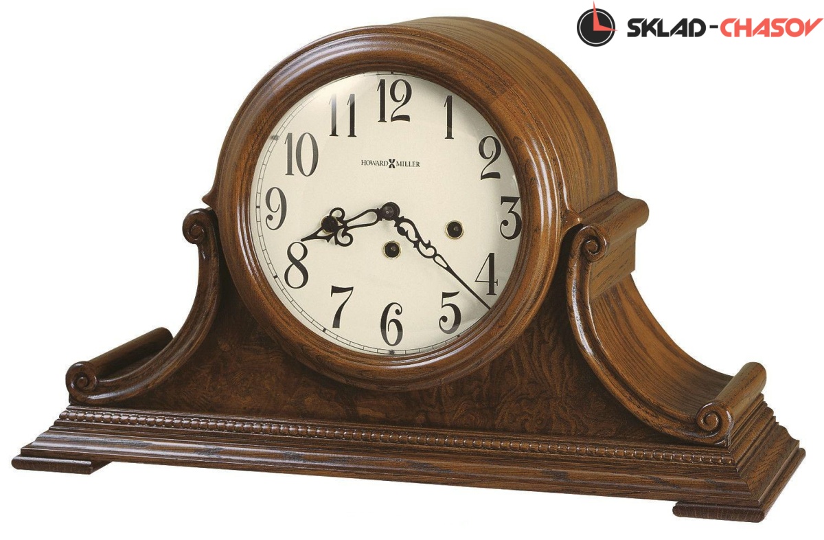 Резной молдинг в виде бус опоясывает основание часов, подчеркивая резные боковые «свитки» и переднюю панель из шпона камфорного дерева с каповыми наплывами.
