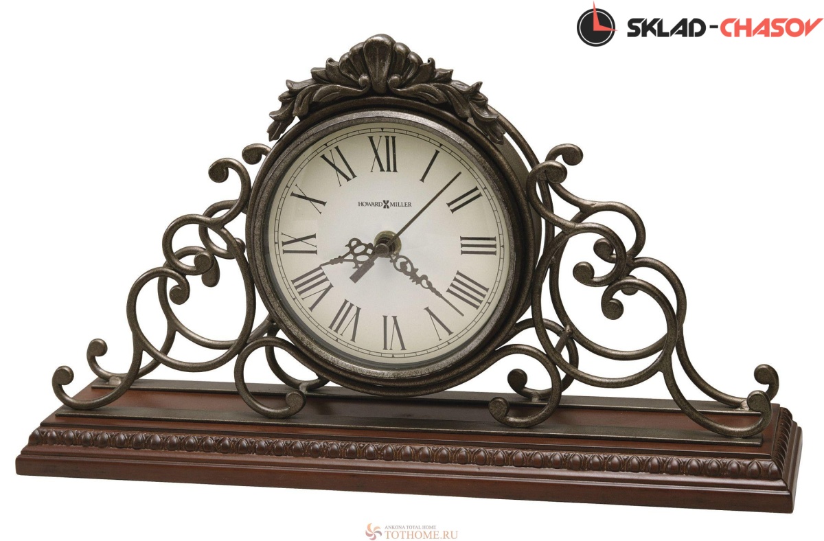 Настольные часы Howard Miller 635-130 Adelaide (Аделаида) с боем. Эти богато украшенные каминные часы с боем обрамляет фигурная рама из кованого железа и декоративный литой венчик. Корпус отделан в теплом сером цвете под «антик» и установлен на деревянном, опоясанном декоративным молдингом, основании в цвете Виндзорской Вишни (Windsor Cherry). Выпуклое хрустальное стекло, витые часовые стрелки и искусственно состаренный циферблат отделаны под «антик», черные римские цифры. Кварцевый механизм, мелодия «Вестминстер» играет каждый час, бой полных часов. Автоматическое ночное отключение мелодии и боя. Требуется 3 батарейки типа АА (не включены в поставку).