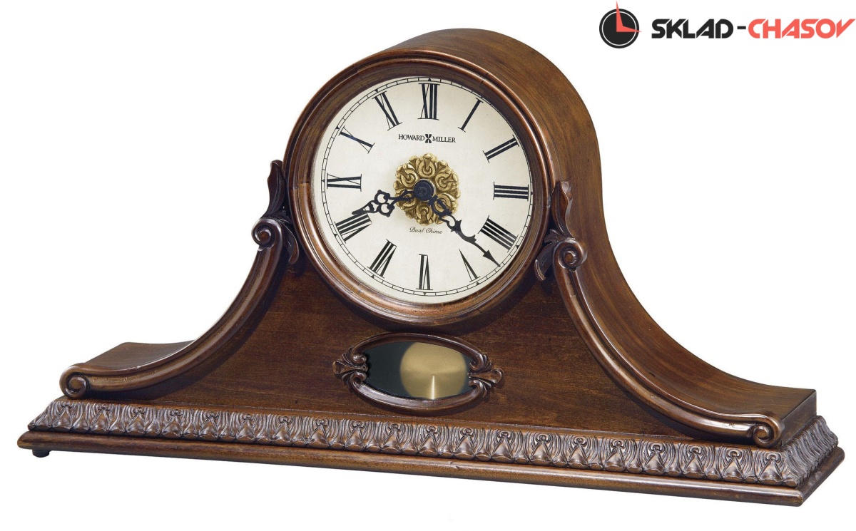 Маятник отделан под матовую «античную латунь» и хорошо виден сквозь стеклянное окошко, обрамленное резной аппликацией.