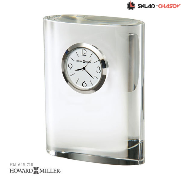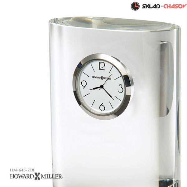 Настольные часы Howard Miller 645-718 Freskor имеют надежный механимз. Корпус выполнен из хрустального оптического стекла овальной формы. Классический круглый белый циферблат с серебристым ободом. Временные рамки обозначены большими арабскими цифрами и визирами (черточками) . В комплектацию включена батарейка и подарочный футляр черного цвета.