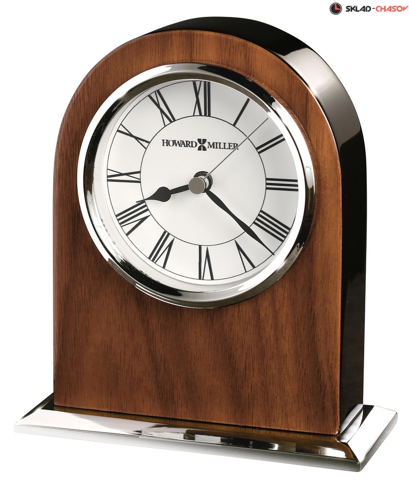 Настольные часы Howard Miller 645-769 Palermo отделаны шпоном ореха на фронтальной и задней частях, торцевая часть - черного цвета.Циферблат белый с черными римскими цифрами защищен хрустальным стеклом.Стрелки черные классической формы.Часы работают от батарейки (В поставку включена 1 батарейка типа АА.)