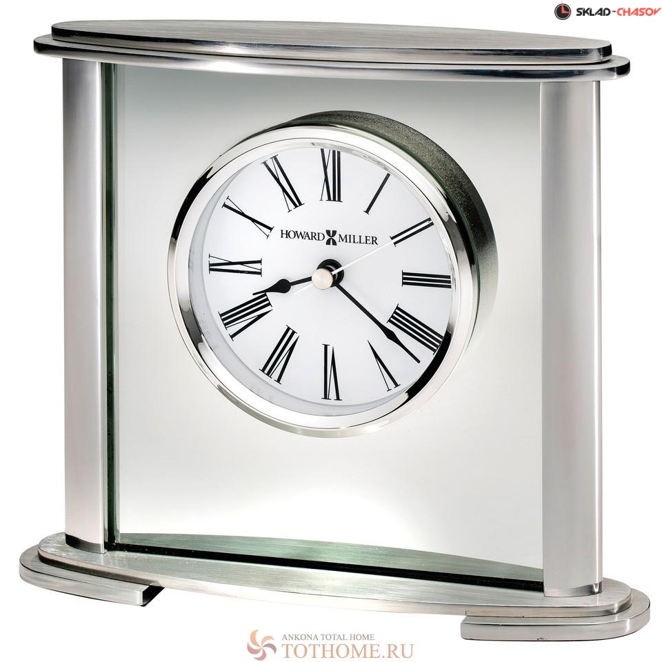 Настольные часы Howard Miller 645-774 Glenmont .Овальные настольные часы. Основание и верхняя панель часов брашированы; все стороны и грани отполированы; дизайн часов дополняют боковые стойки, отделанные полированным металлом. Белый циферблат с черными римскими цифрами; черные часовая и минутная стрелки; секундная стрелка серебристая; стекло обрамляет полированный металлический ободок.Фетровая накладка защитит вашу поверхность от царапин.Кварцевый механизм, в поставку включена 1 батарейка типа АА.