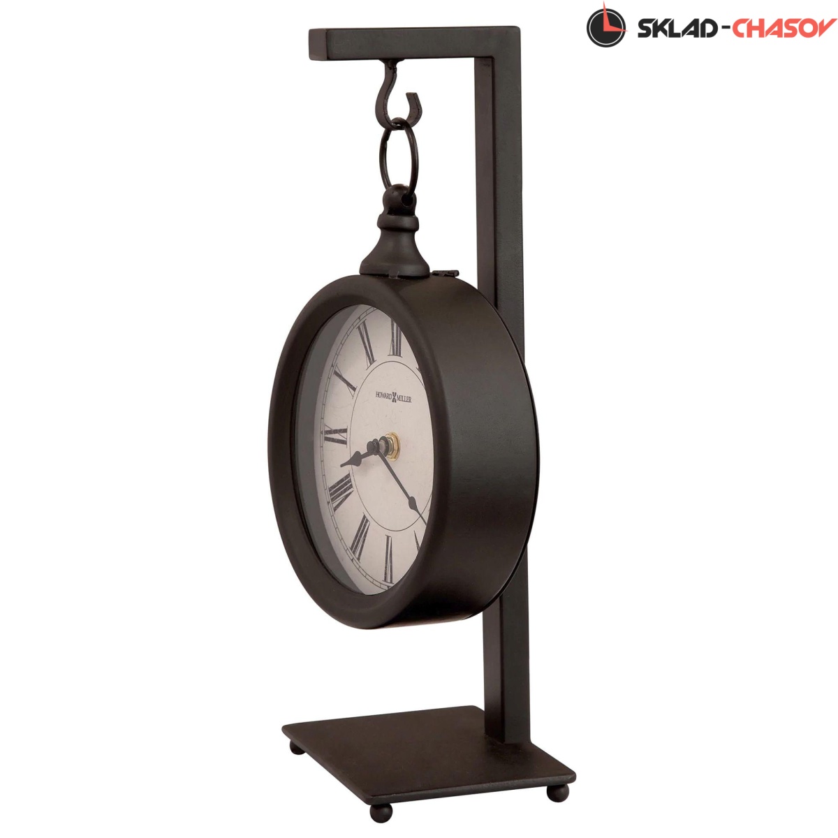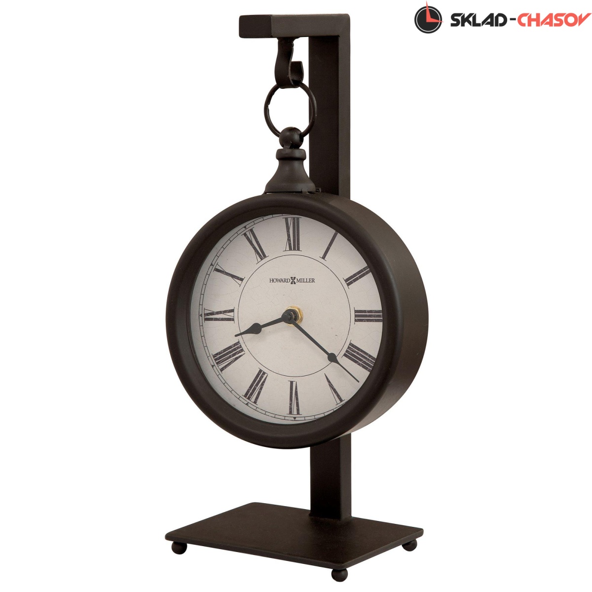 Корпус этих каминных часов изготовлен из металла и тонирован в черном цвете с имитацией старения. Циферблат представляет собой капсулу, подвешенную на основании. Немного грубоватая отделк корпуса дополняет дизайн часов. Циферблат можно снять с основания и навесить в любом другом месте, например над камином в гостиной, кабинете или спальне.