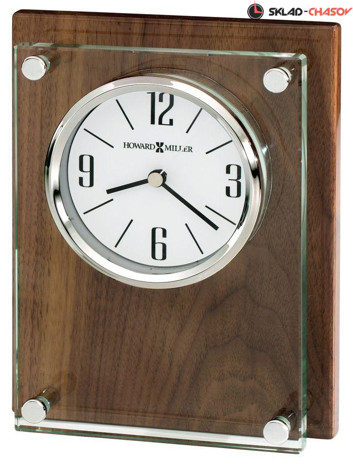 Ультрамодные настольные часы с высокоглянцевой, отделанной шпоном грецкого ореха панелью, под толстым стеклом.